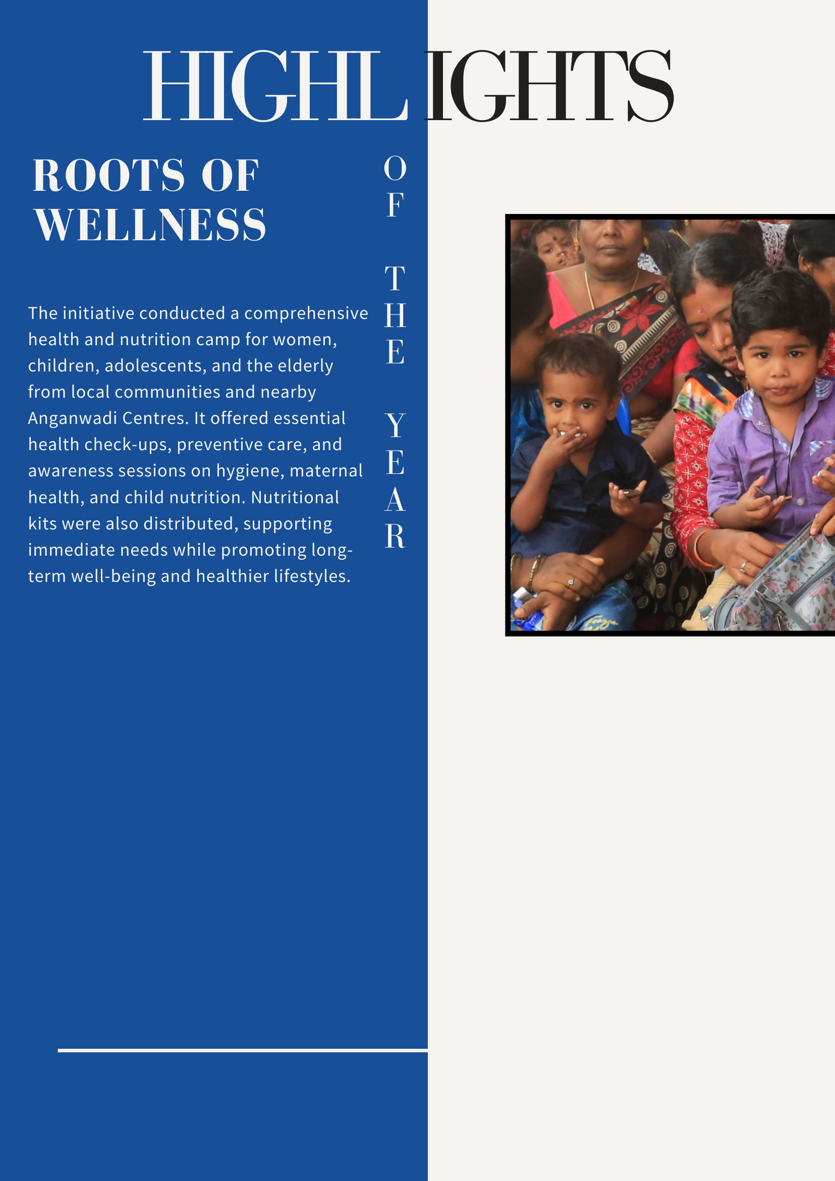 - Health and nutrition: organizing community health camps, supplying nutrition support in construction sites and slum areas, and providing cancer screening services as part of collaborations with established health non-governmental organizations (NGOs).